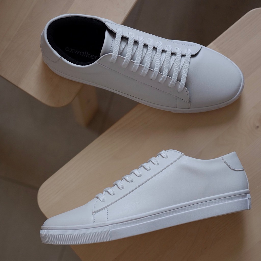 Sepatu Putih Pria Sneakers Casual Kulit Polos Kasual Cowok Sumber : shopee.co.id